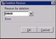 On the Billing screen, select transactions to delete. (See Billing Screen - Selecting Transactions for details.) Right-click on the transaction or transactions you wish to delete and select Delete Transaction from the Quick Menu. A message will notify you if any of the transactions you selected cannot be deleted; otherwise, you are asked to confirm your choice. When you click on Yes, you are prompted to select a reason for the deletion.
