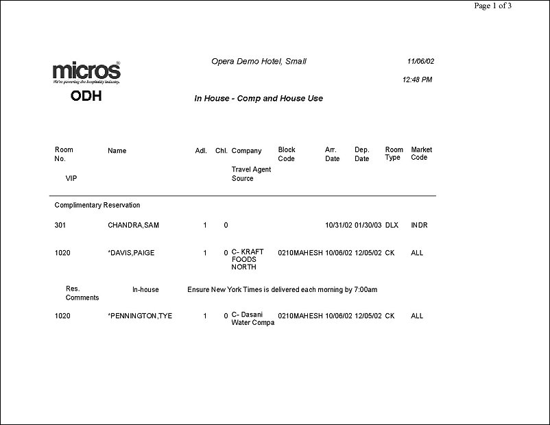 Complimentary. When checked, guests that are receiving a complimentary room rate will display on the report.