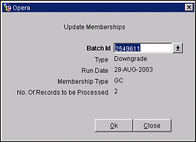 Membership Type. Select the down arrow to display the Membership Type LOV. Choose the membership type to run the batch process.