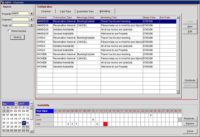 New. Select this button to access the Marketing - New screen and configure new marketing text associated with the properties and channels.