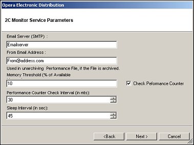 Refer to the following image and the table below for information on entering 2C Monitor Service parameters.