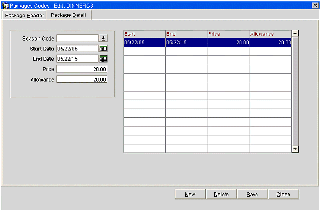 Dinner package element will be added to the price of the rate code to which it was attached. Allowance will be generated upon check-in, and then during the end of day process for each additional night that the guest stays. A single line entry will appear on the folio for the rate and package consolidated together.
