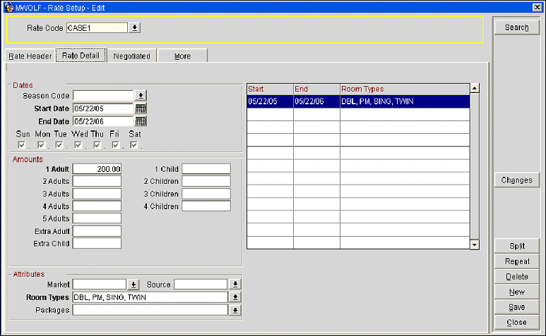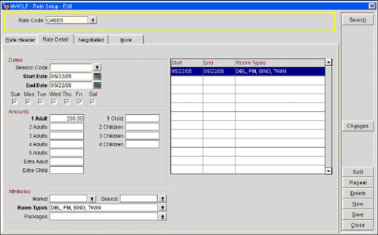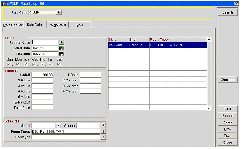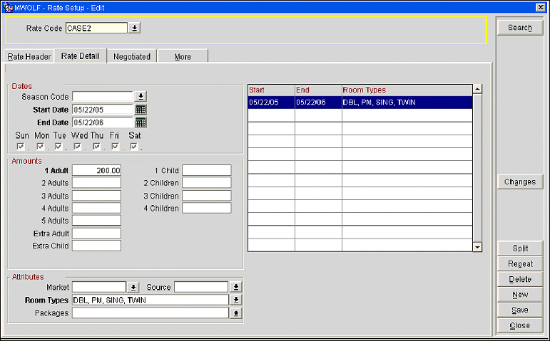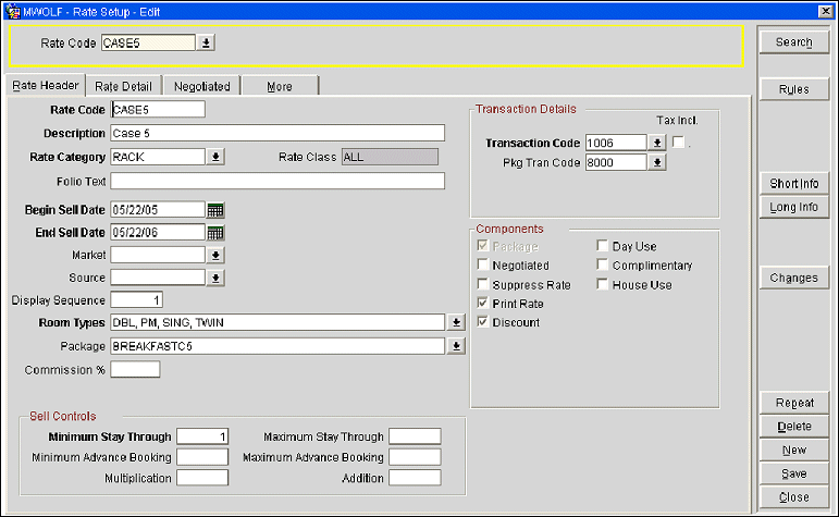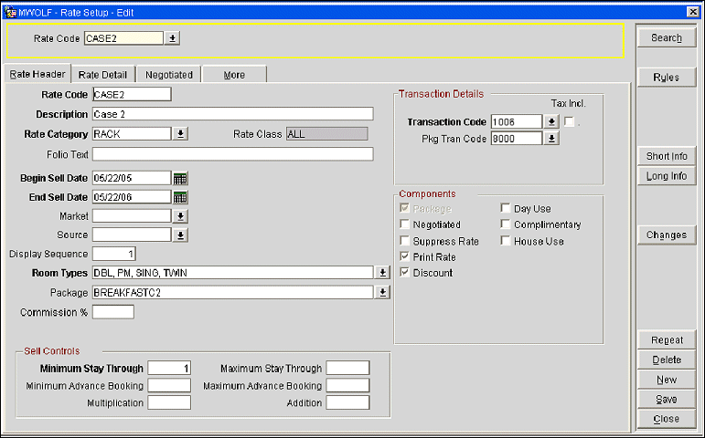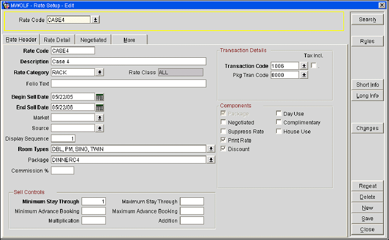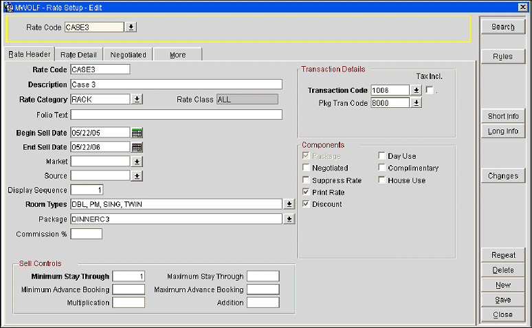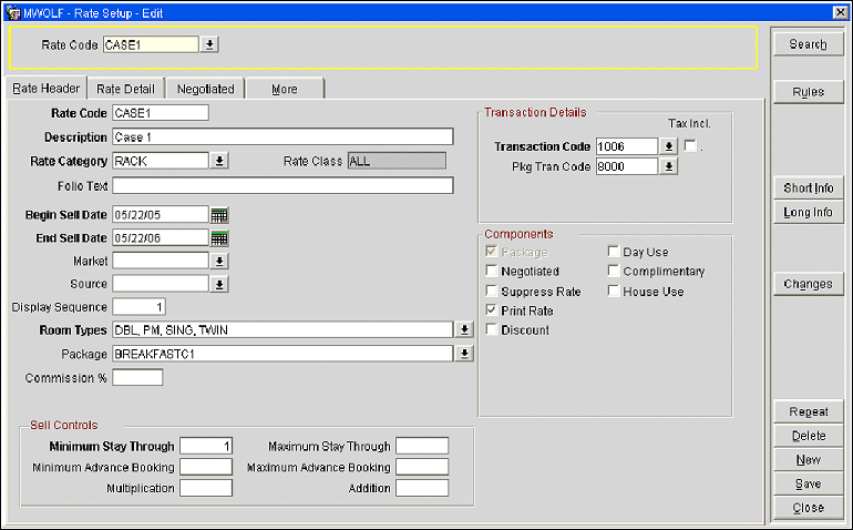 The following five case studies are examples of the package ledger system. These case studies assume that the following rate code and transaction codes are configured at the property.
