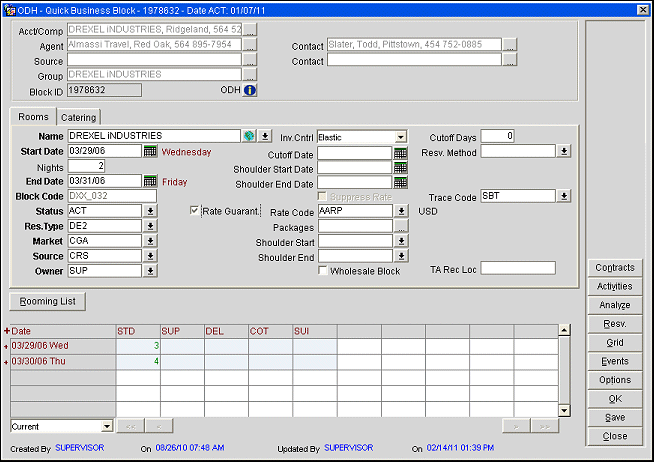 Resv. (Available when business block status is in an open-for-pickup status.) Create a posting master and go to the Room List screen where you can make reservations for this business block.