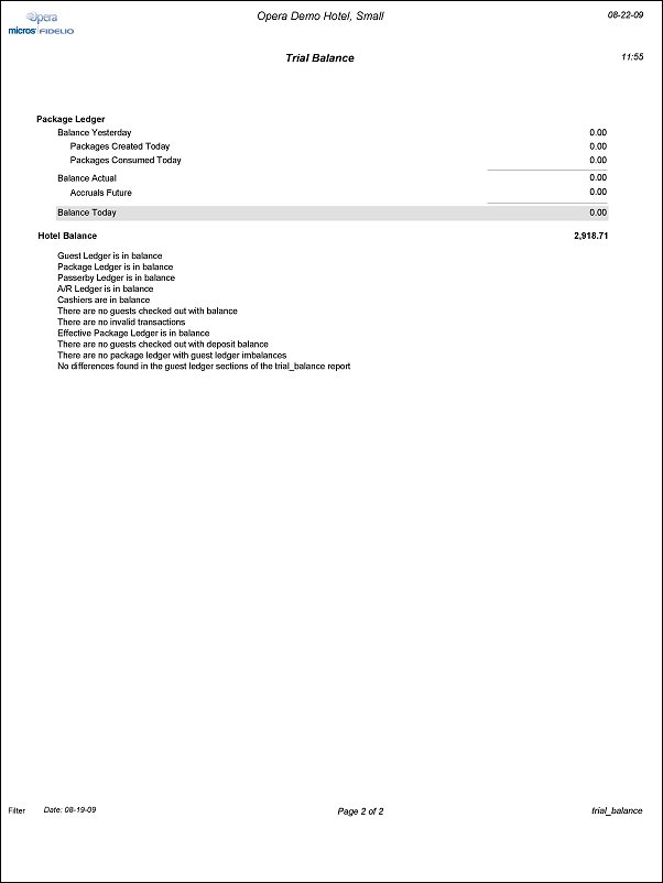 Trial Balance Report with Inter Hotel Revenues (available when the OPP_MHT3 Multi-Property Cross Revenues add-on license is active).