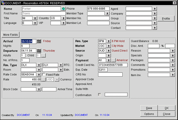 See Reservation Screen for a complete description of all Reservation screen fields and features. Following is some specific advice when you are editing an existing reservation.